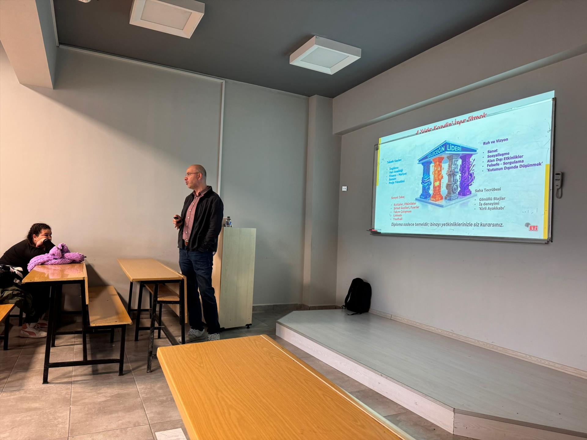 Eti Proje Planlama ve Ambalaj Geliştirme Müdürü Sayın Ömer Bora Okutan, 1. sınıf öğrencilerimizin Kariyer Planlama dersine konuk olarak 'Özel Sektörde Kariyer Gelişimi' üzerine değerli tecrübelerini paylaşmıştır. Davetimizi kabul ederek bilgi ve tecrübelerini öğrencilerimizle paylaşan, gelecek vizyonlarına değerli katkılar sunan Sayın Ömer Bora Okutan’a teşekkürlerimizi sunarız.